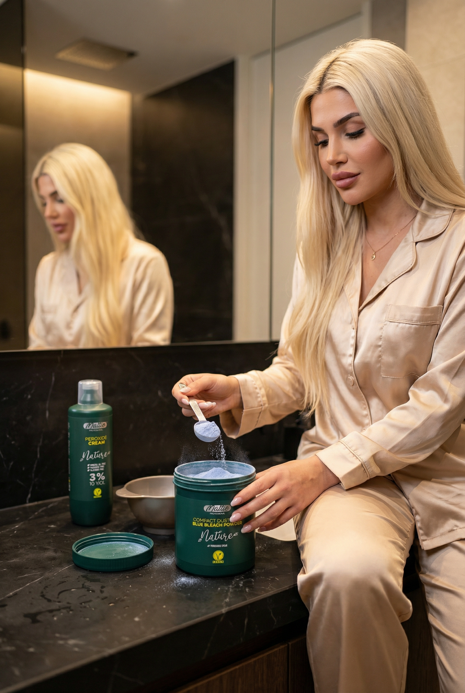 Ammonia-free bleaching with professional lift. Mattie Nature Bleach Powder delivers up to 7 levels of clean, controlled lightening without harsh fumes, unnecessary damage or compromise. Designed for colourists and confident at-home users who want high lift, soft hair and predictable results.